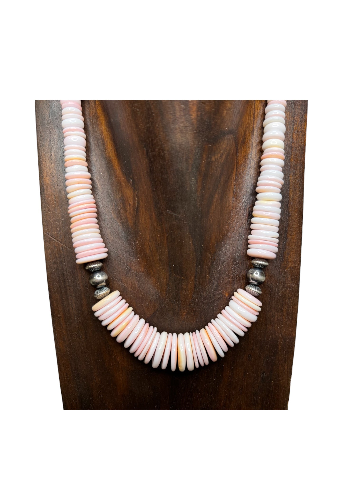 made with authentic pink conch and navajo pearls