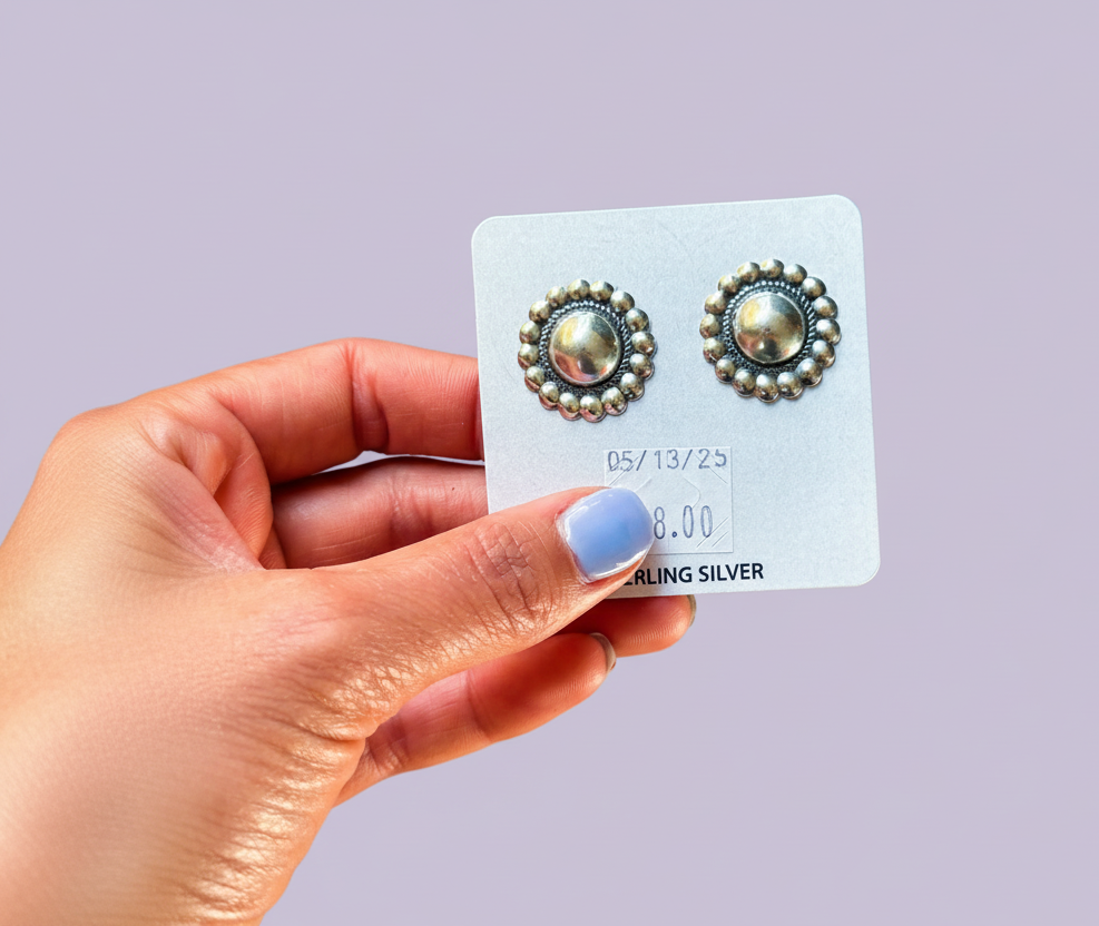 Made from solid sterling silver with a traditional stamped concho design, each pair offers lightweight comfort and everyday wearability.